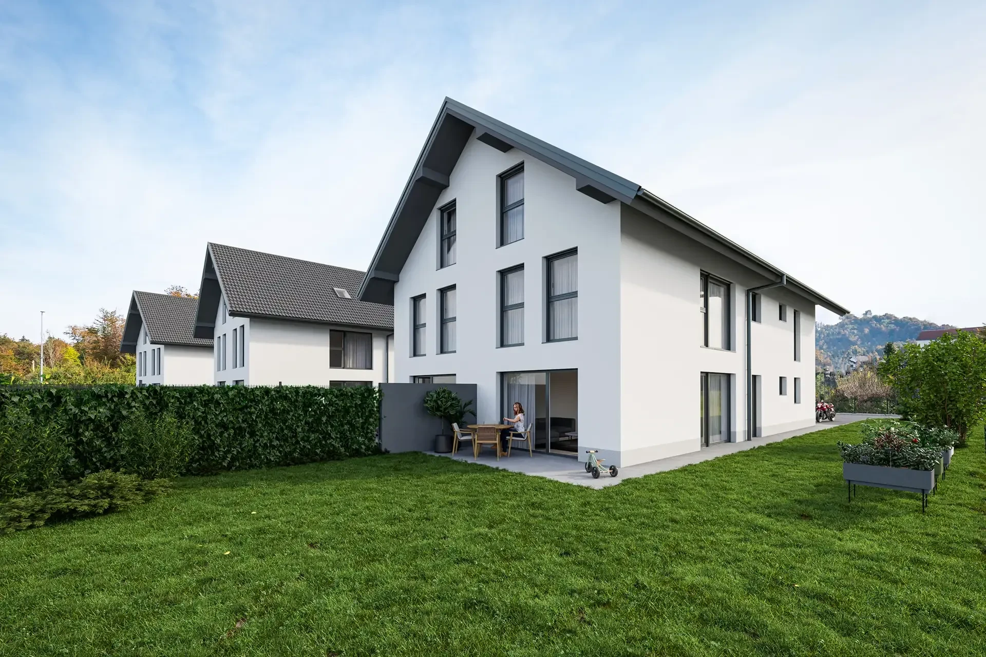 Izdelujemo foto-realistične 3d vizualizacije stanovanjskih hiš, poslovnih, družbenih, športnih in industrijkih stavb, zunanje ureditve, krajinske arhitekture, infrastrukturne in urbanistične ureditve. Izdelujemo tudi fotorealistične renderje izdelkov.